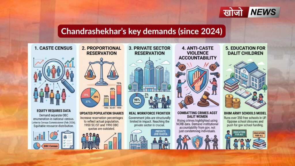 | Core Demands (2026) | Caste census, increased reservation proportional to population, private sector reservation, old pension scheme reinstatement |